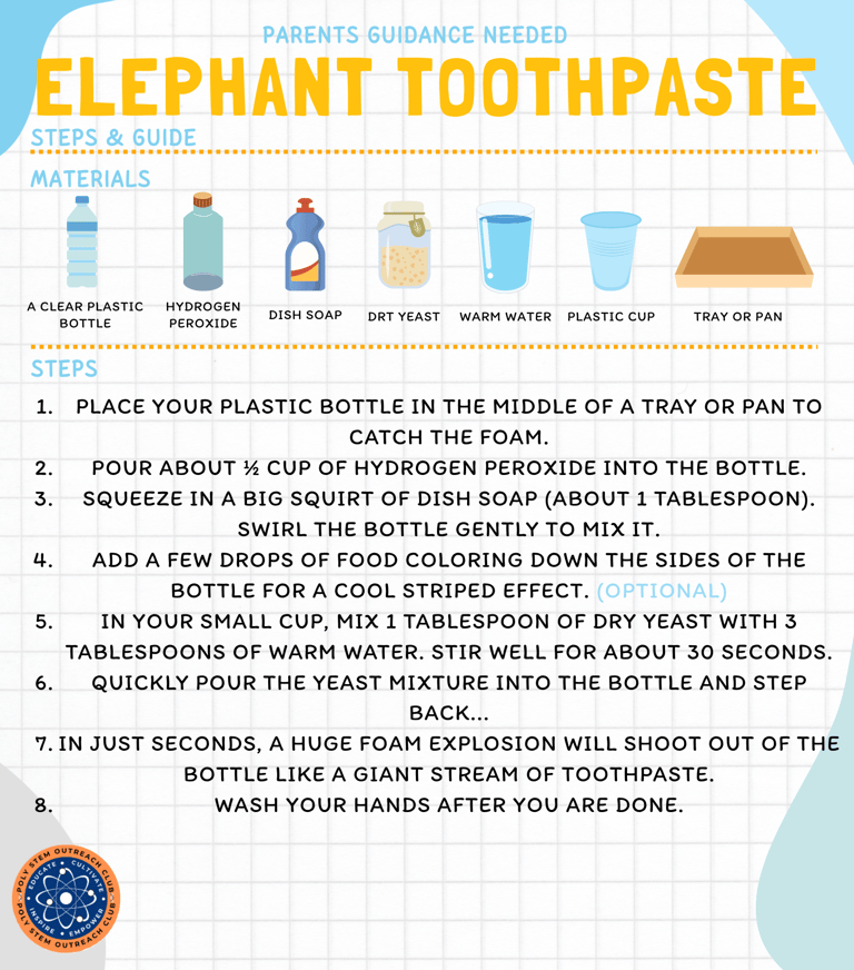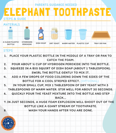 Elephant toothpaste is a fun science experiment that creates a big, foamy explosion using hydrogen peroxide, yeast, and soap. It looks like giant toothpaste squirting out of a bottle!