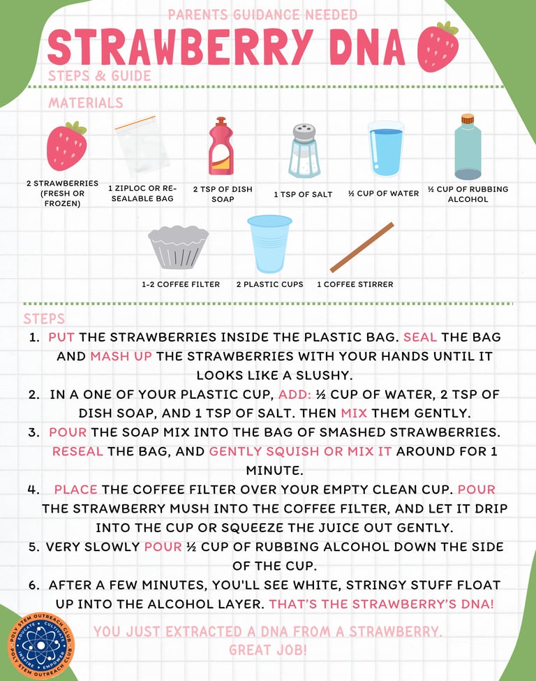 DNA is like a recipe book inside every living thing—it tells cells how to grow and work. Strawberries have DNA just like humans do!